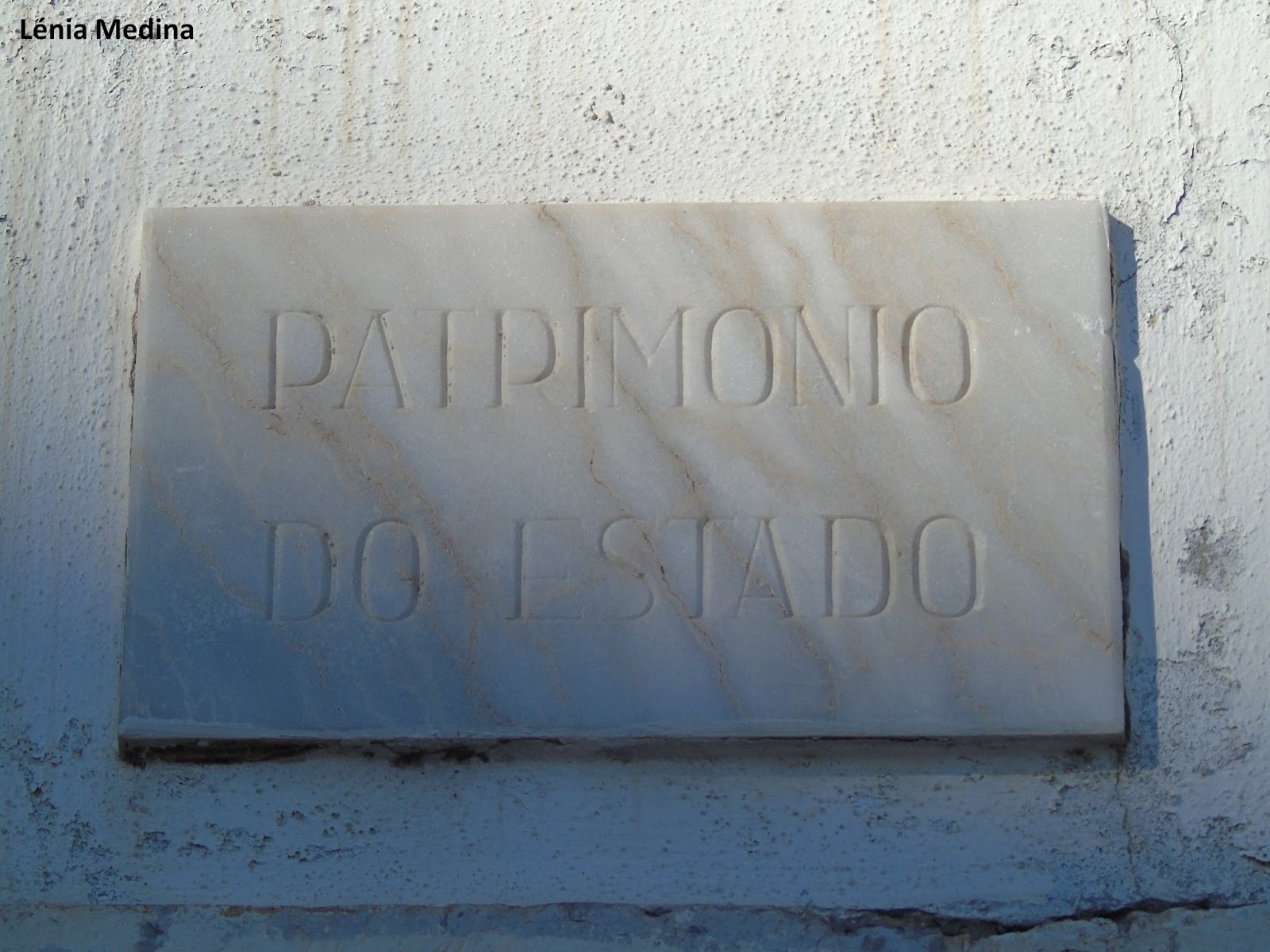 que leva a um portão encimado pelo brasão nacional. Pode-se também observar as